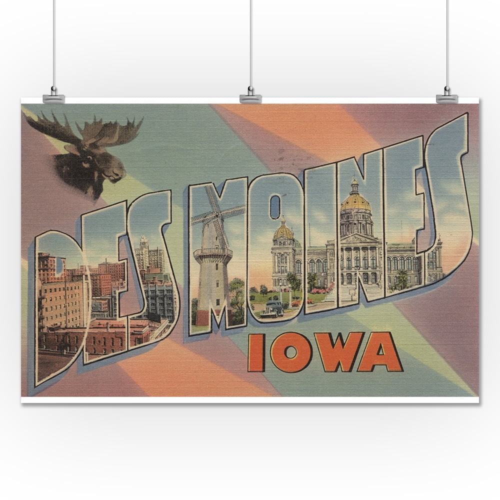 Greetings From Des Moines Iowa Moose Head 12x18 Art Print Wall Decor Travel Poster Walmart Com